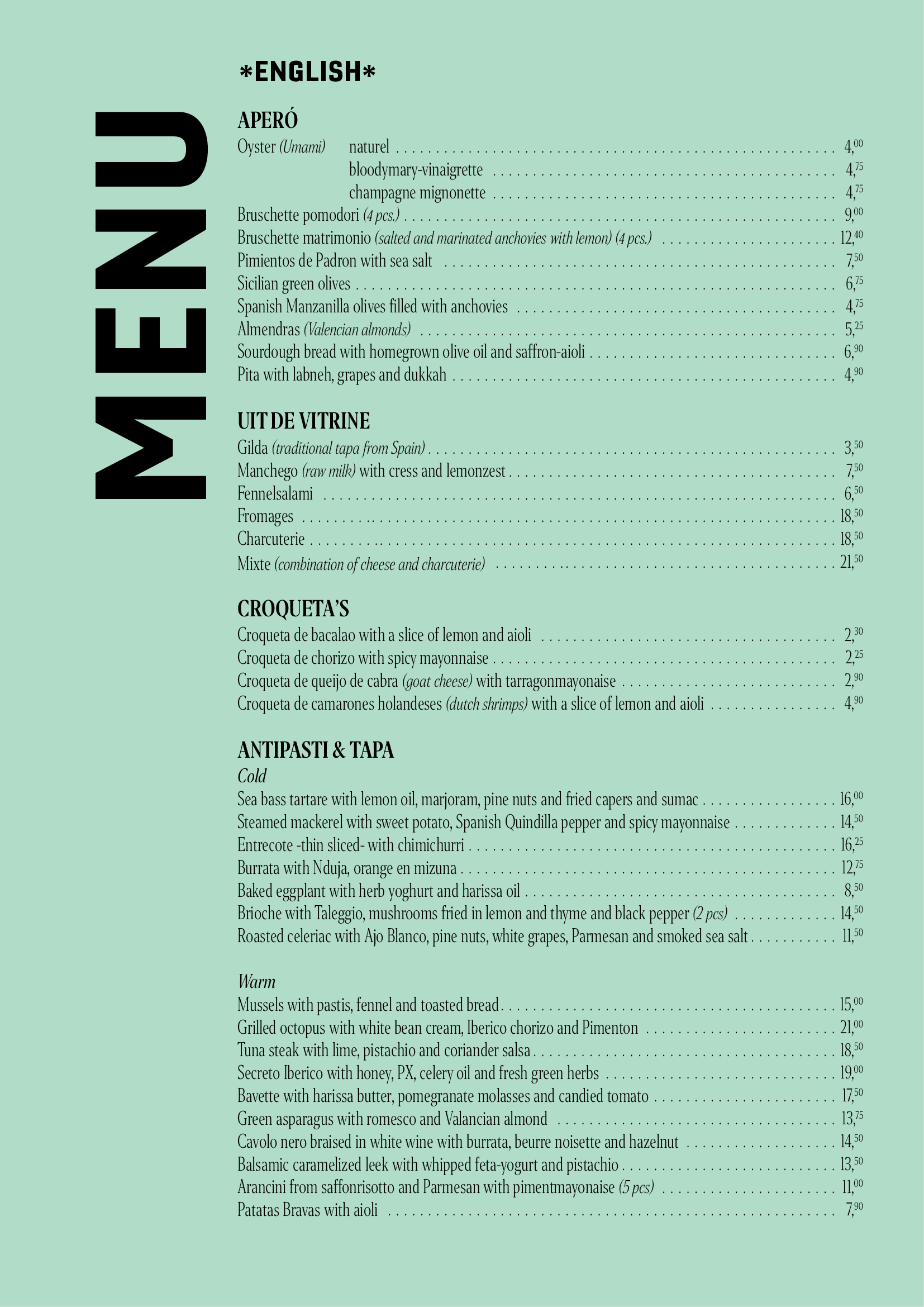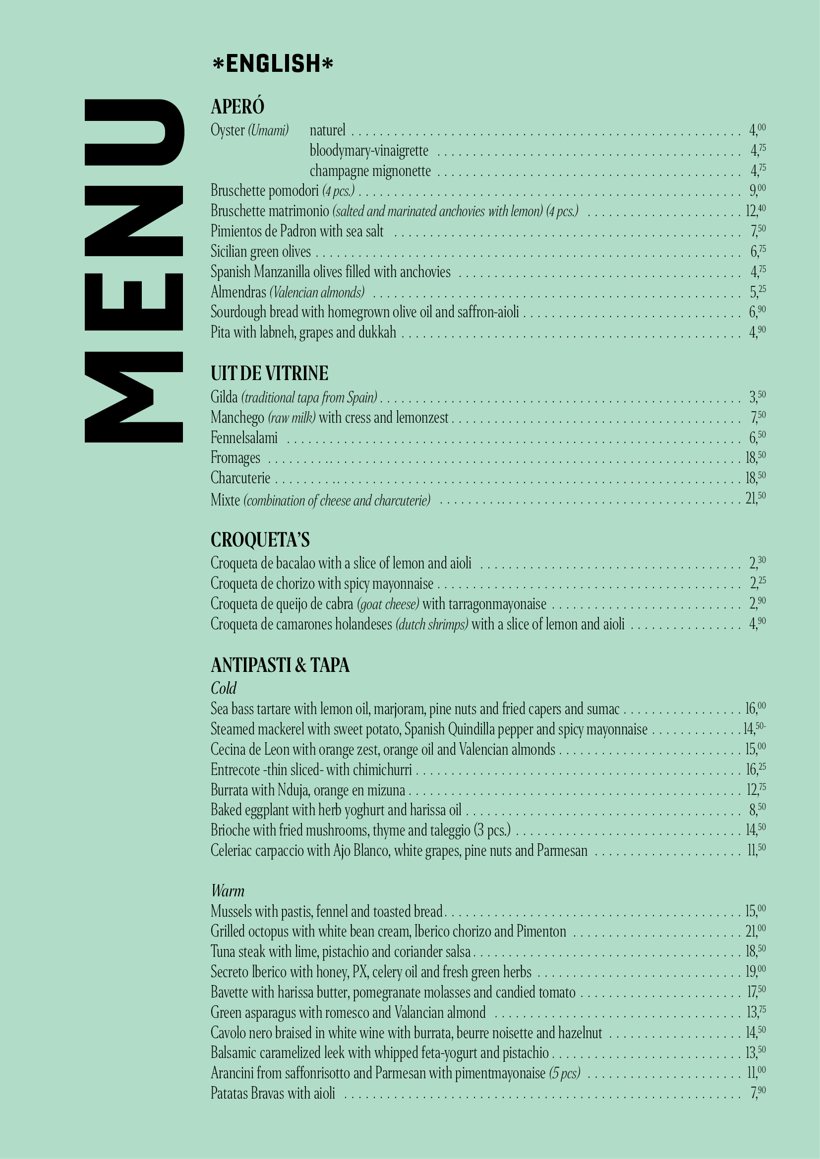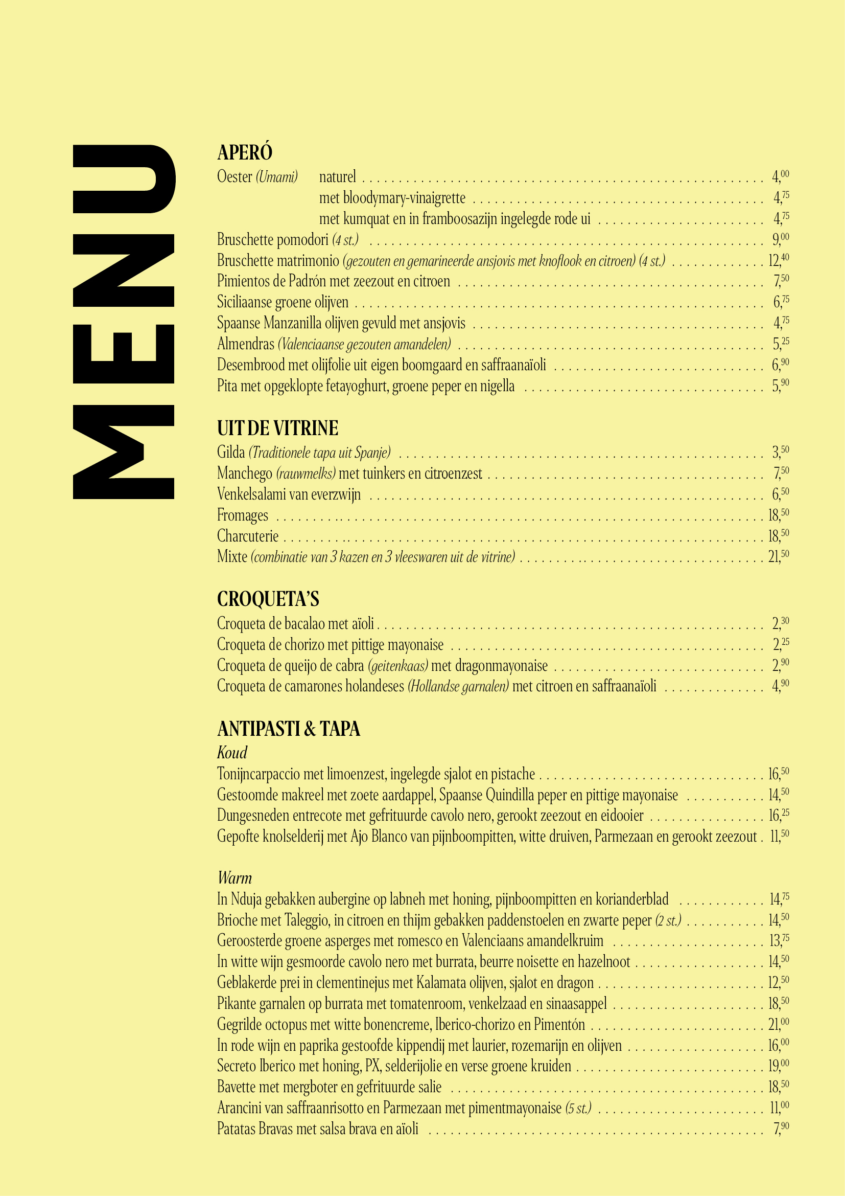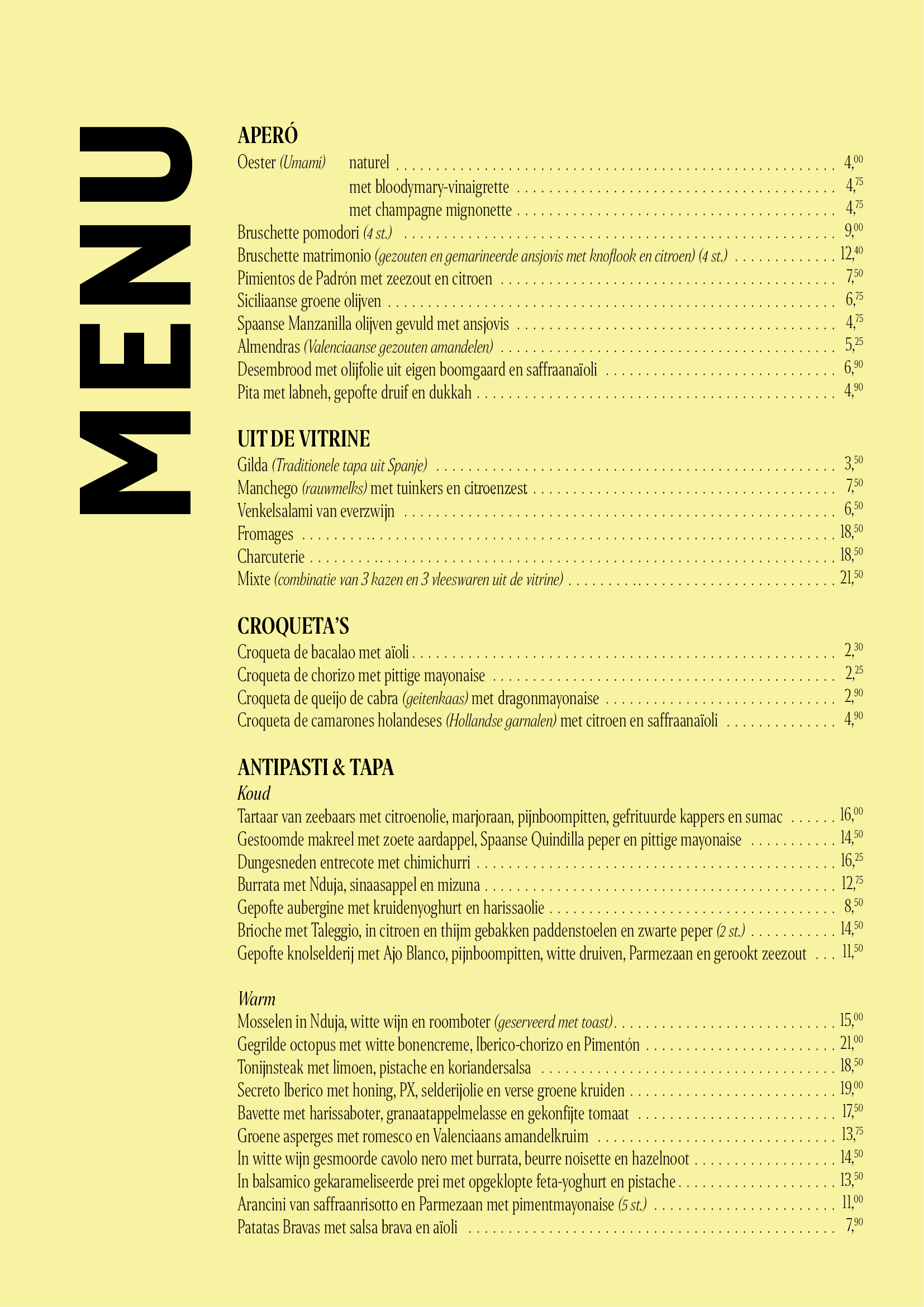 menukaart